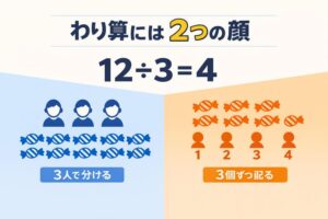 | わり算 | 除法の意味、包含除と等分除、余り |